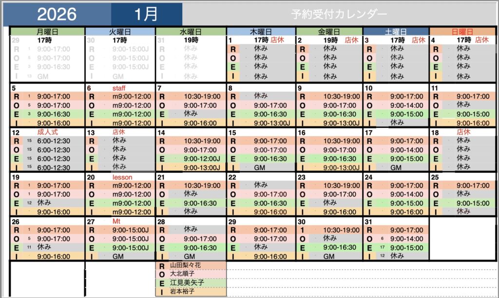 2026年より、働き方改革の考えを取り入れ、スタッフ一人ひとりが心身ともに健やかに働ける環境づくりのため、